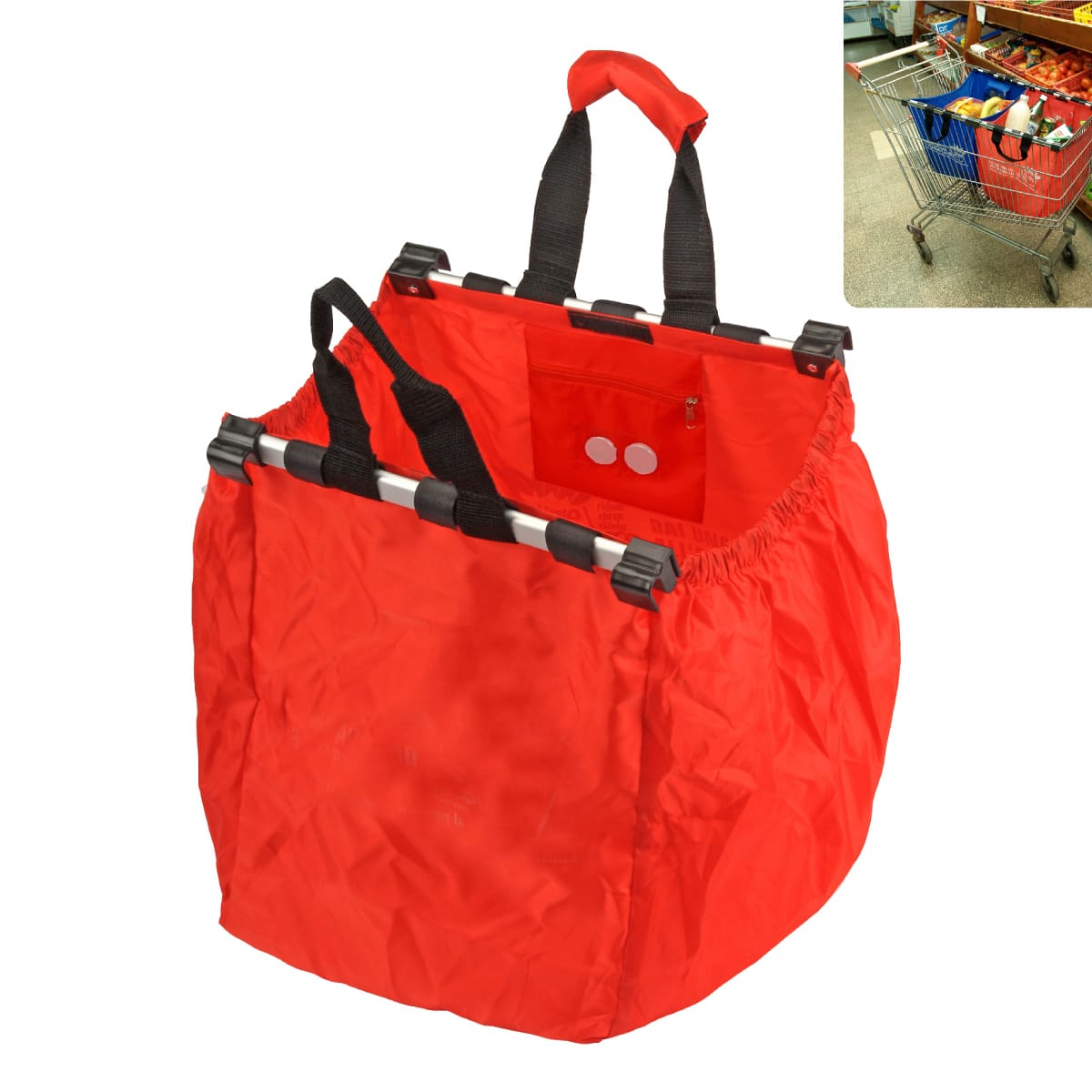 סל מיוחד לעגלת קניות, ידידותי לסביבה, מוט אלומיניום, עשוי מניילון, כיס פנימי, 2 מטבעות לשחרור עגלה, שרוול אריזה