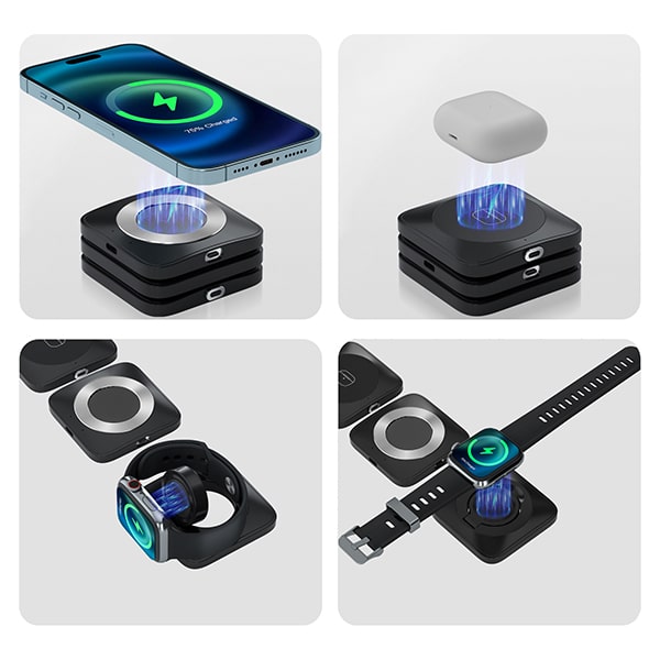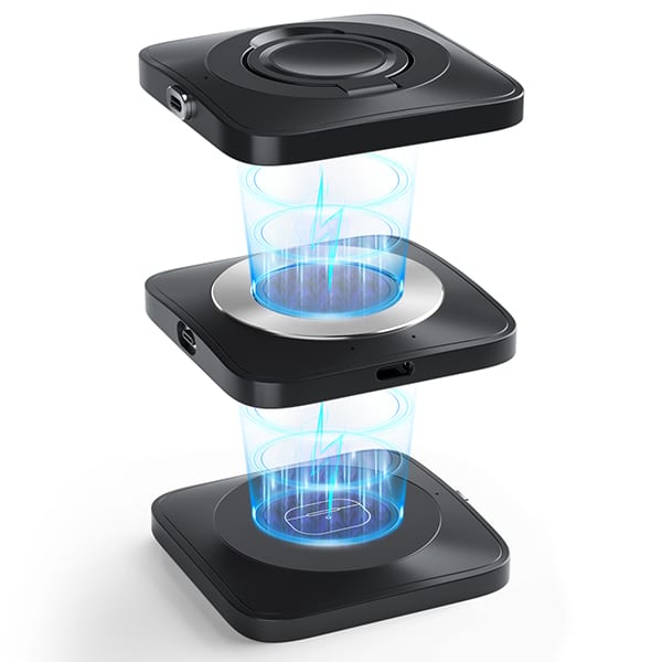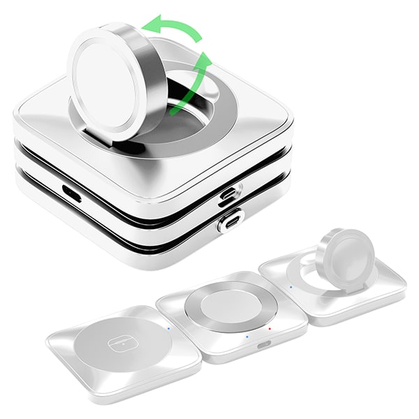 מטען אלחוטי 3 ב-1 בעיצוב מודולרי חכם – פתרון מושלם לטעינת כל המכשירים במקביל.