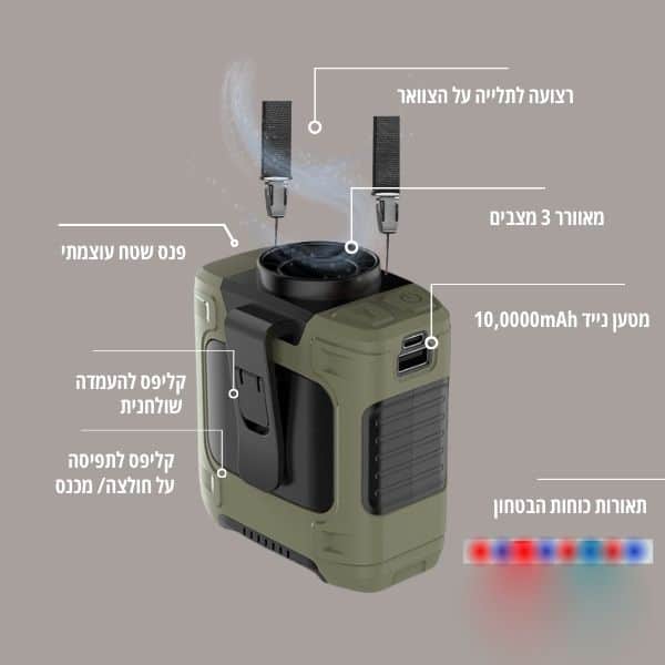 עם 3 מצבי אוורור ופנס עם 2 מצבי תאורה