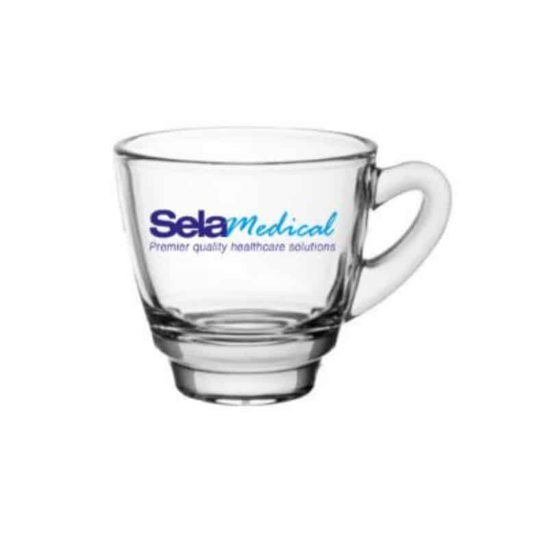 ספל זכוכית 57 מ"ל לשתיית אספרסו עם ידית כולל הדפסת לוגו