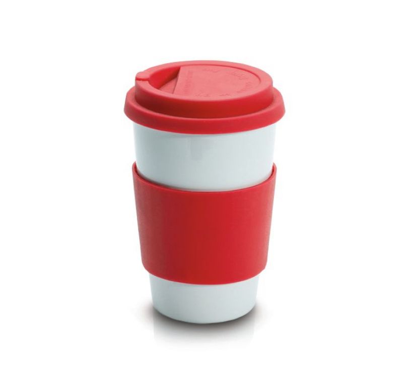 ספל פורצלן מעוצב עם מכסה וחבק עשויים סיליקון