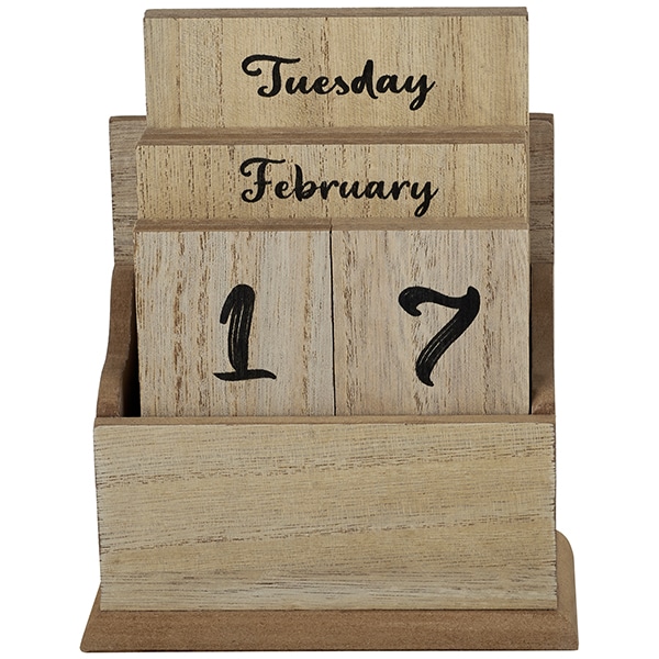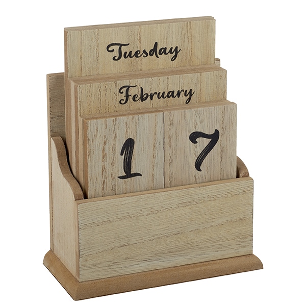 קלנדר עץ שולחני גדול 16X13 ס"מ עם לוחיות תאריכון
