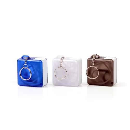 אוזניות כבל עם כפתורי סיליקון המגיעות בתוך קופסא מרובעת שהיא גם מעמד לנייד