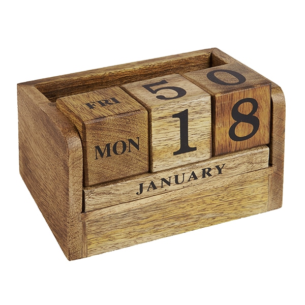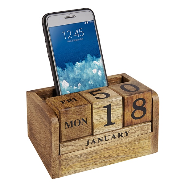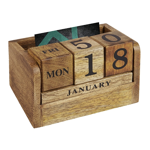 מעמד קלנדר תאריכון קוביות עץ טבעי עם מעמד כרטיסי ביקור וניידים