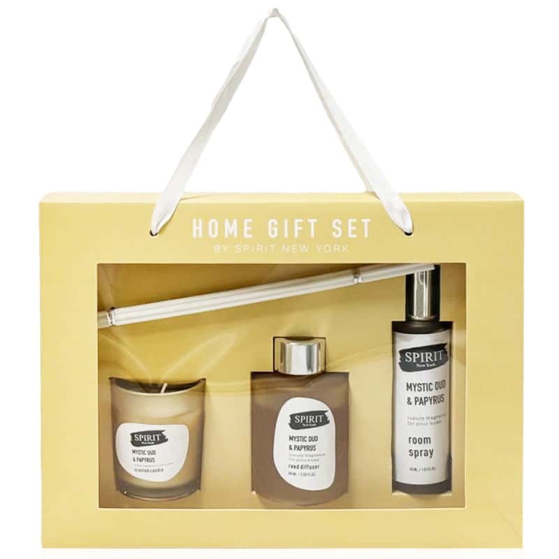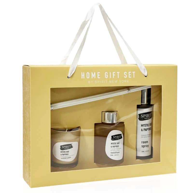 סט המשלב מפיץ ריח, נר ריחני ומבשם אוויר