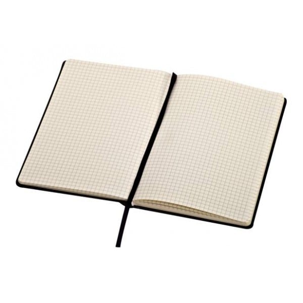 מחברת גודל A5, 48 דף חלק ו 48 דף משבצות, כריכה קשה סגירה עם גומי.