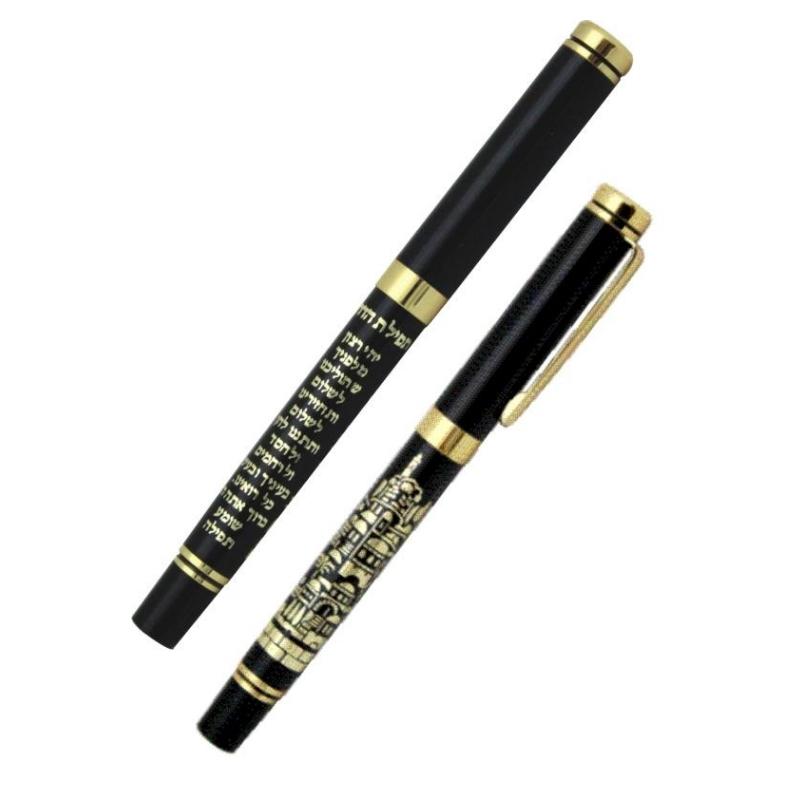 עט שחור מהודר עם כיתוב זהב "תפילת הדרך" עם עיצוב ירושלים – עברית 13.5 ס"מ