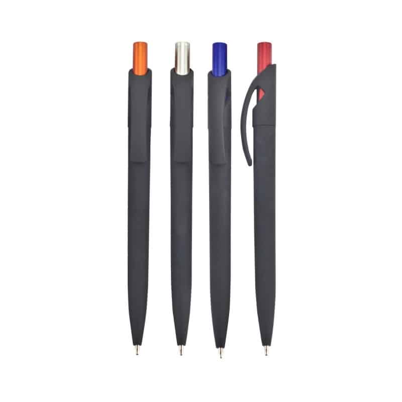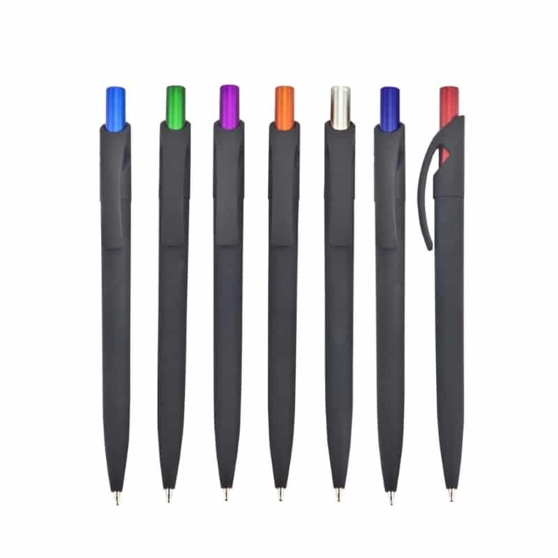עט ג’ל,גוף פלסטיק, גימור גומי, לחצן מטלי צבעוני – לואיז בלק