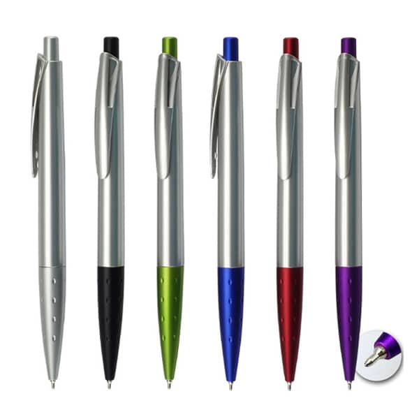 עט חוד מחט מילוי ג'ל פתיחה בלחיצה גוף כסוף בשילוב צבעים מטאליים