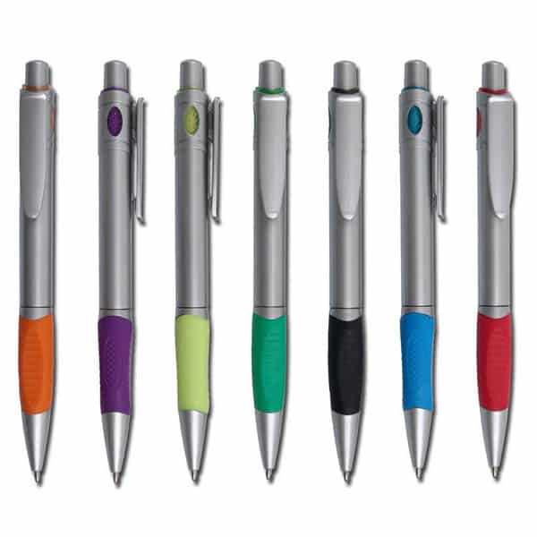 עט כדורי כסוף עם גריפ גומי בשילובי צבעים