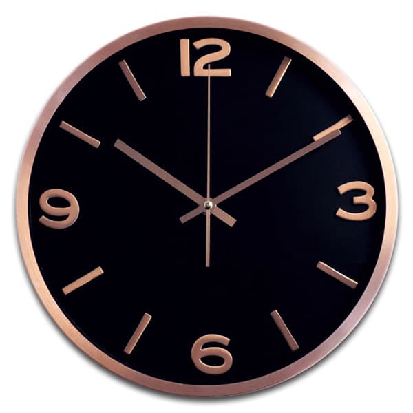 שעון קיר מתכתי יוקרתי בגימור נחושת עם מנגנון שקט