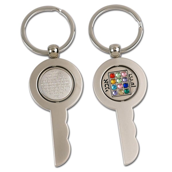 מחזיק מפתחות עם שיבוץ של אבני החושן, בצורת מפתח עם ראש קינטי וכיתוב תפילת הדרך