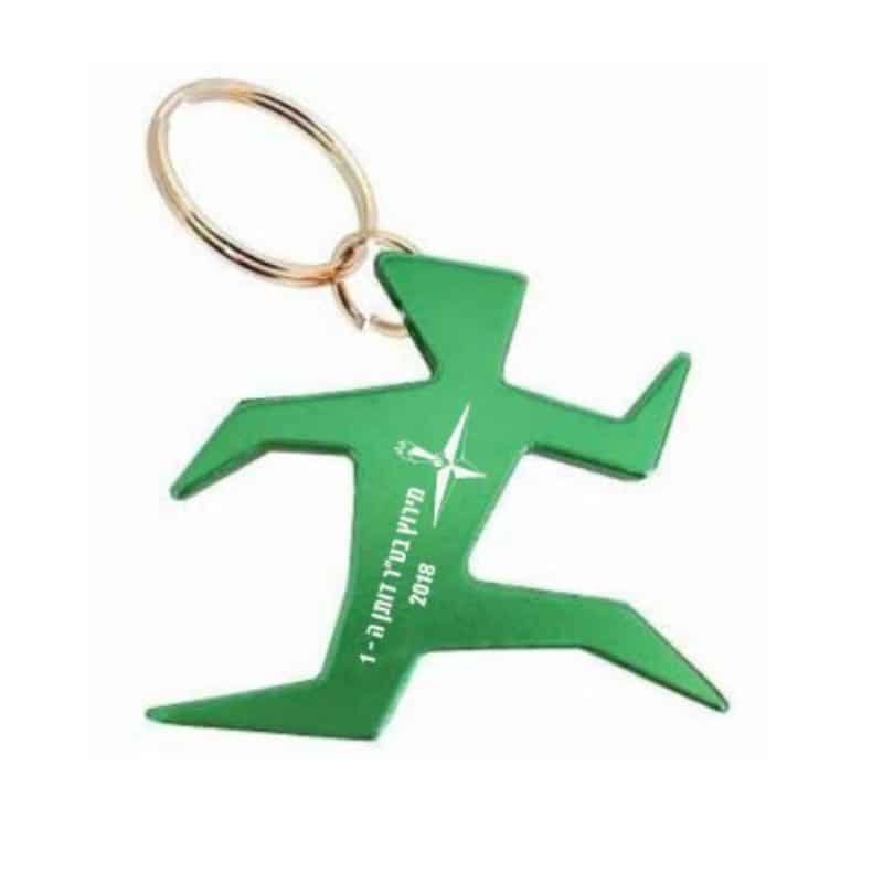מחזיק מפתחות מתכתי בצורת איש רץ עם חריטת לייזר עבור מירוץ בט"ר דותן