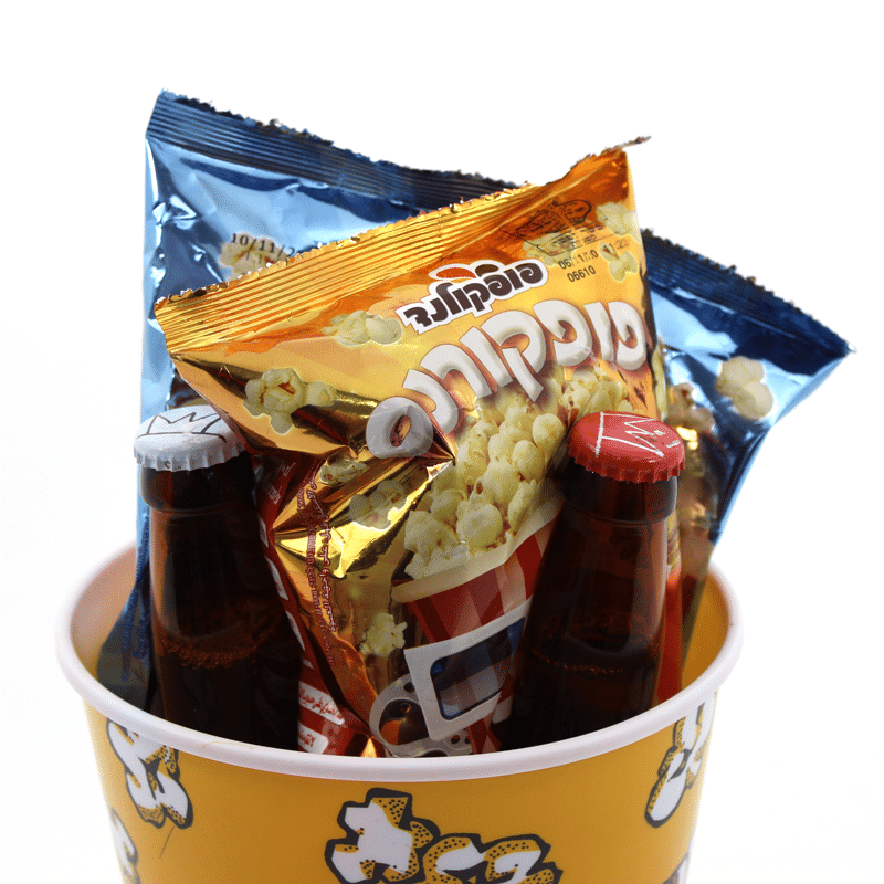 ניתן למתג גם את אריזות הפופקורן ובקבוקי הבירה.