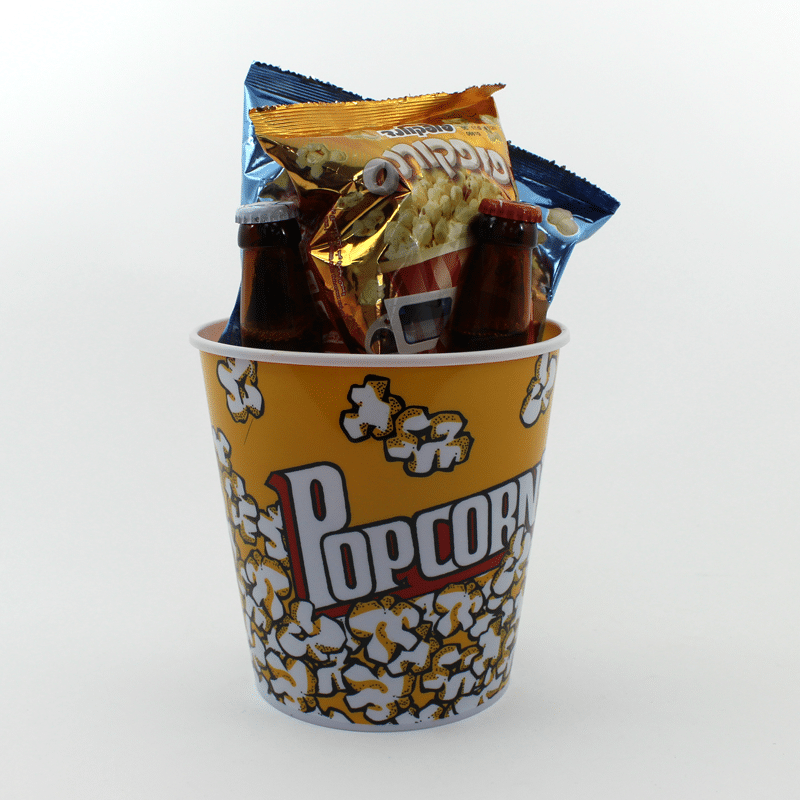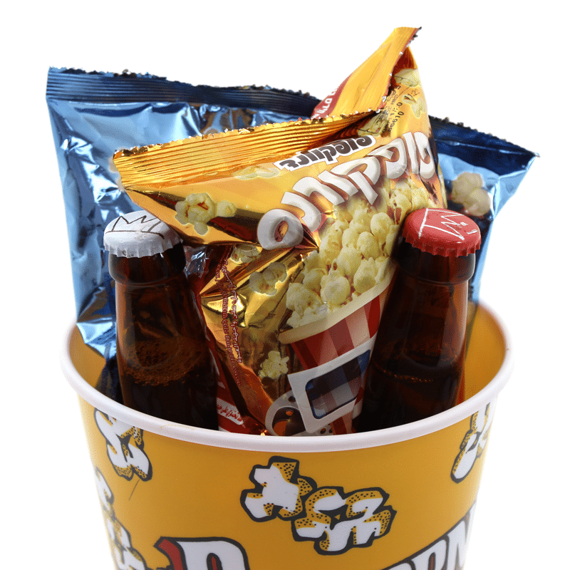 מארז בירה ופופקורן, המארז כולל כלי רב פעמי ענק לפופקורן, 2 שקיות פופקורן במגוון טעמים לבחירה וזוג בקבוקי בירה, ניתן לבחור בירה מכל סוג בהתאמה אישית ועפ"י התקציב.
