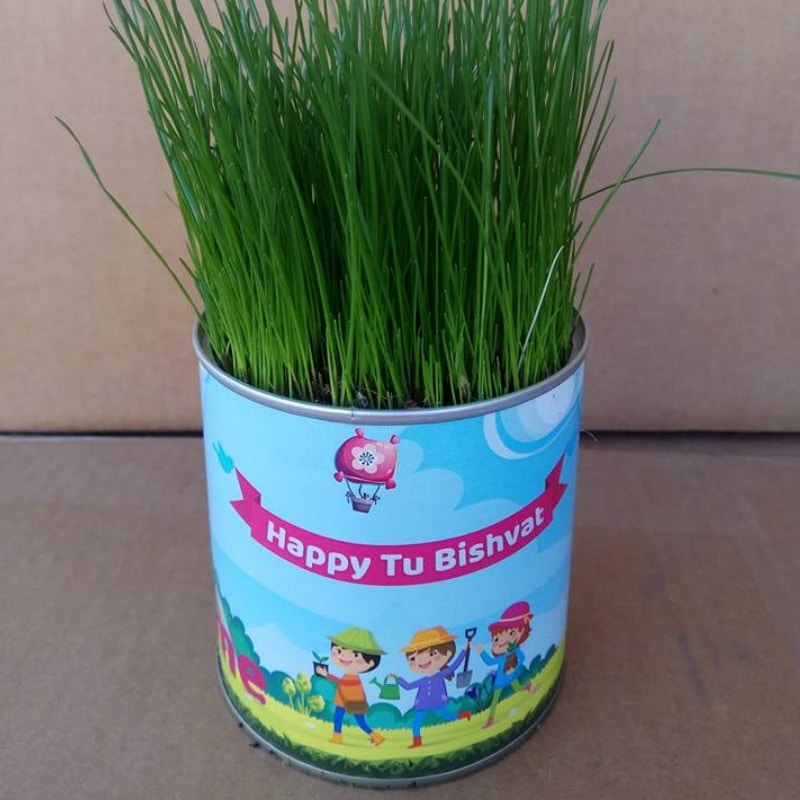פחית ממותגת בעיצוב אישי המכילה ערכה לגידול ראש דשא