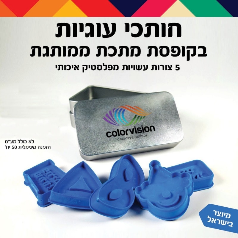 5 צורות שונות עשויות מפלסטיק איכותי לחיתוך עוגיות, מוגשים במארז מתכתי ממותג