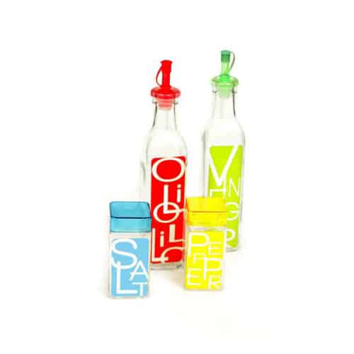 סט ארבע בקבוקים לרטבים[שמן וחומץ]מלחיה ופלפליה