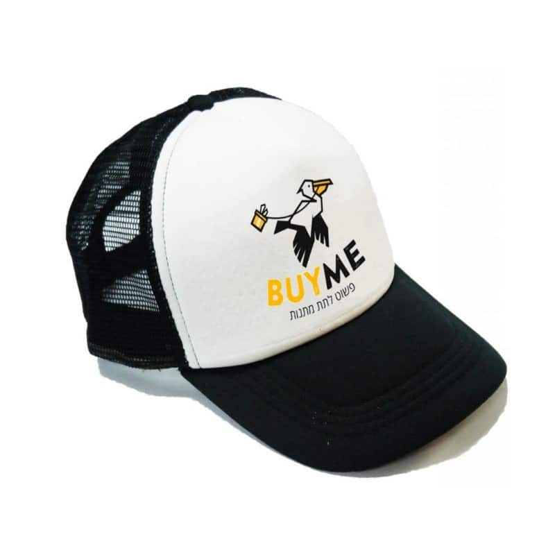 כובע רשת 5 פנלים בשילובי לבן עם סגר פלסטי
