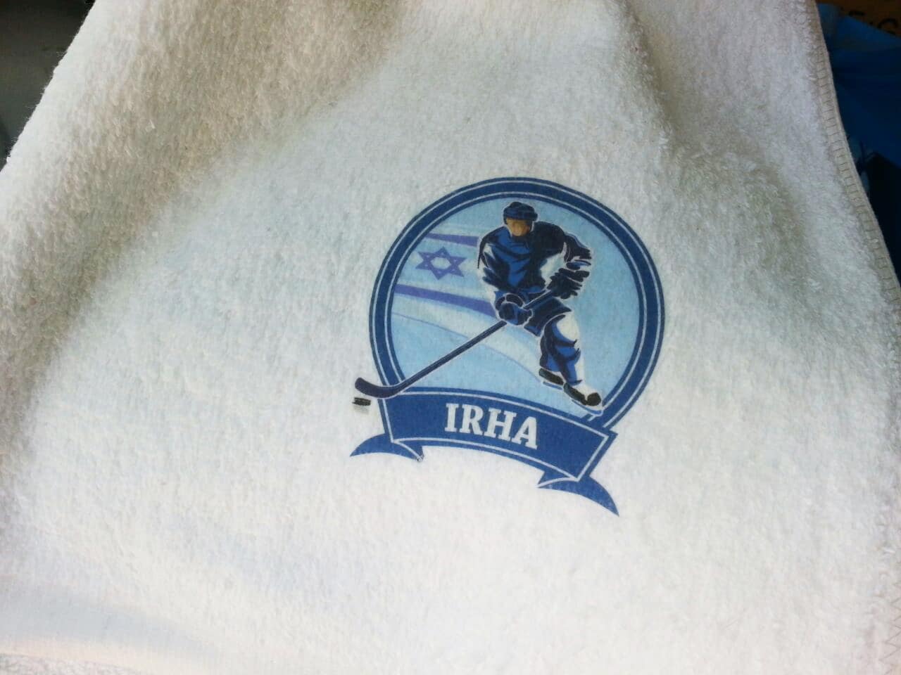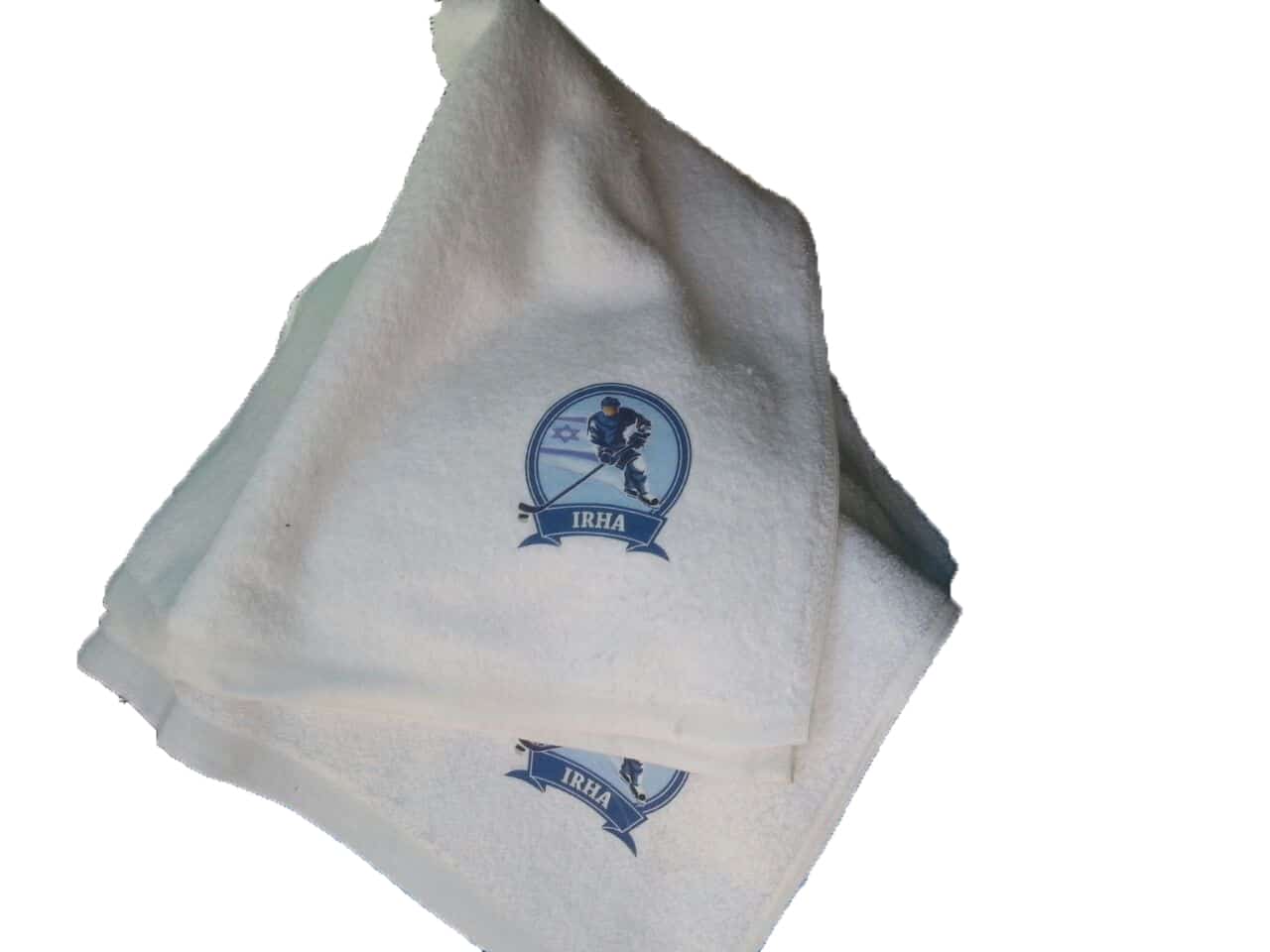 מגבת אישית איכותית ממותגת בעזרת מדבקה צבעונית בחיתוך לייזר