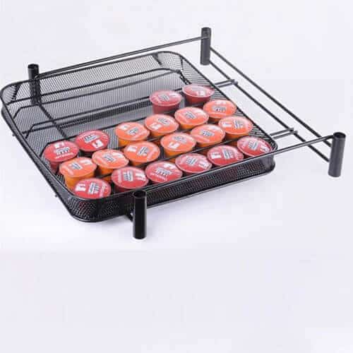 מתקן לאכסון קפסולות מכונות קפה מגירה ומדף זכוכית.ניתן להניח את המכונה עליו