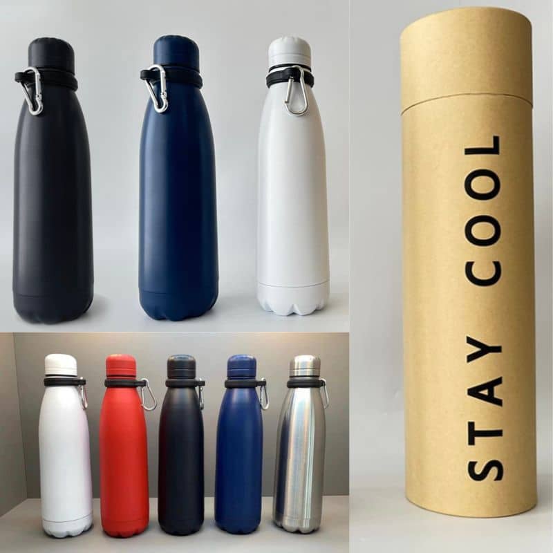 בקבוק טרמי עשוי נירוסטה שומר קור וחום בעיצוב אופנתי עם שאקל לאחיזה נוחה