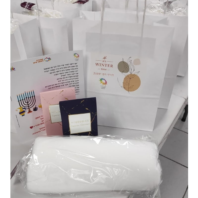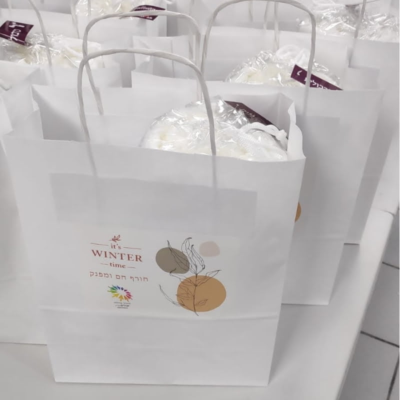 שקית נייר ממותגת במדבקה צבעונית וכוללת: