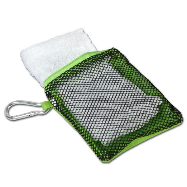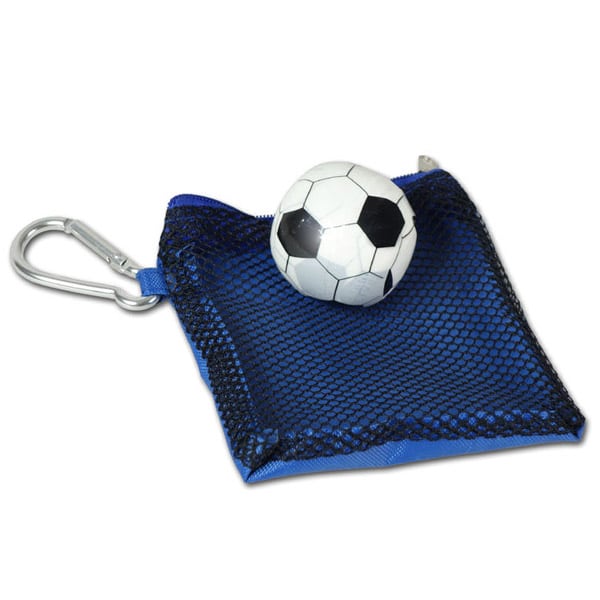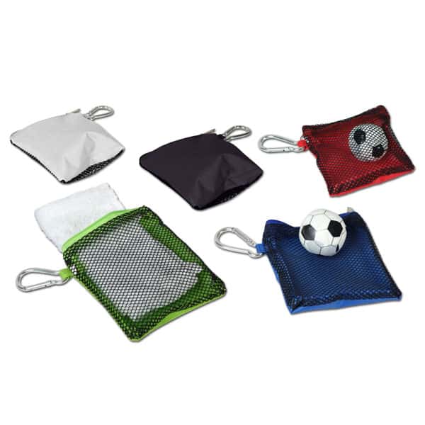 מטלית רענון מקופלת ככדורגל בנרתיק רשת עם שאקל לתלייה על תיקים , חגורות