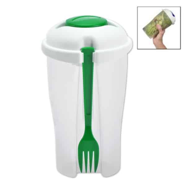 תכולה של 1 ליטר (4 כוסות סלט), קופסה נפרדת לרוטב המכילה 4 כפות, חבויה במכסה העליון, מזלג בצד הכוס. באישור מכון התקנים.