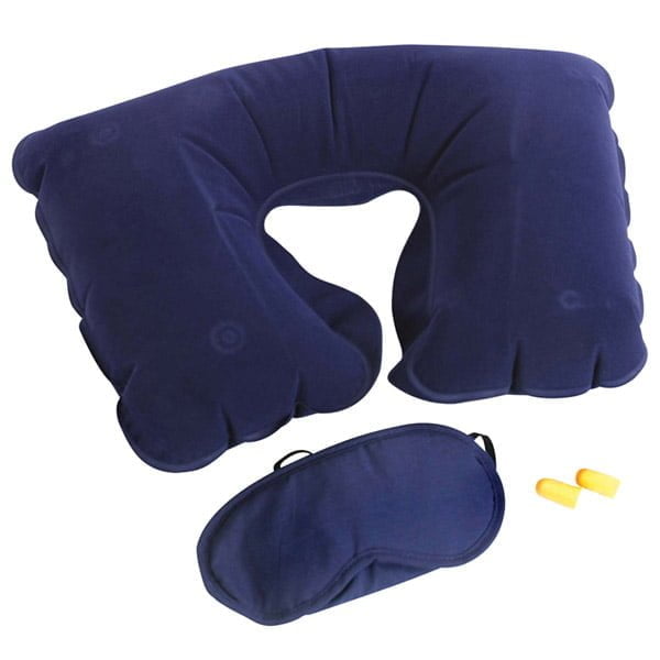 הערכה כוללת: כרית מתנפחת, כיסוי לעיניים ואטמי אוזניים