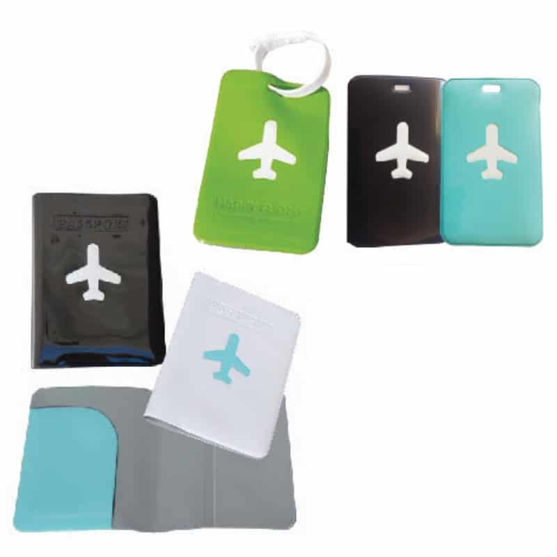 סט כיסוי לדרכון ותג מזוודה מחומר PVC גמיש.