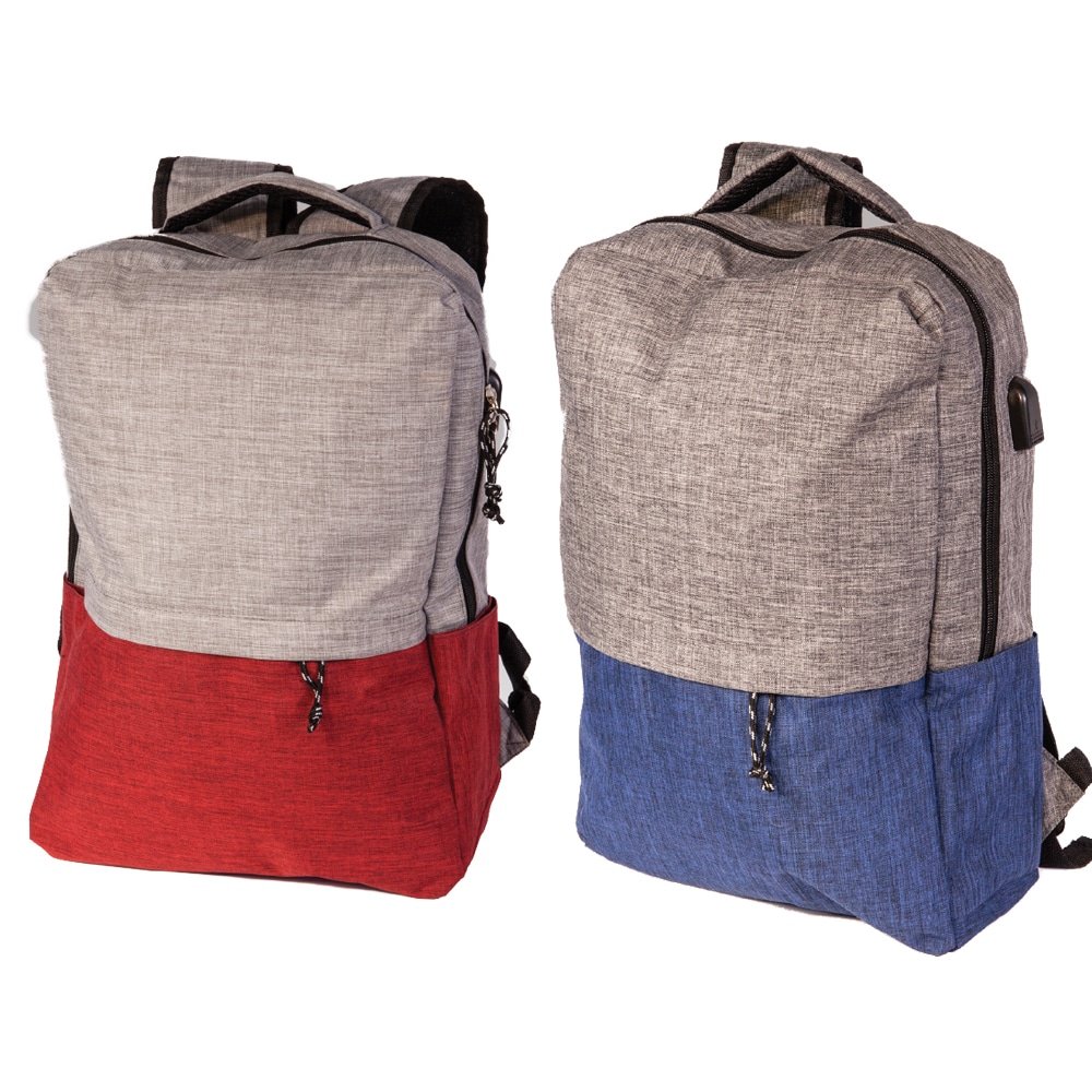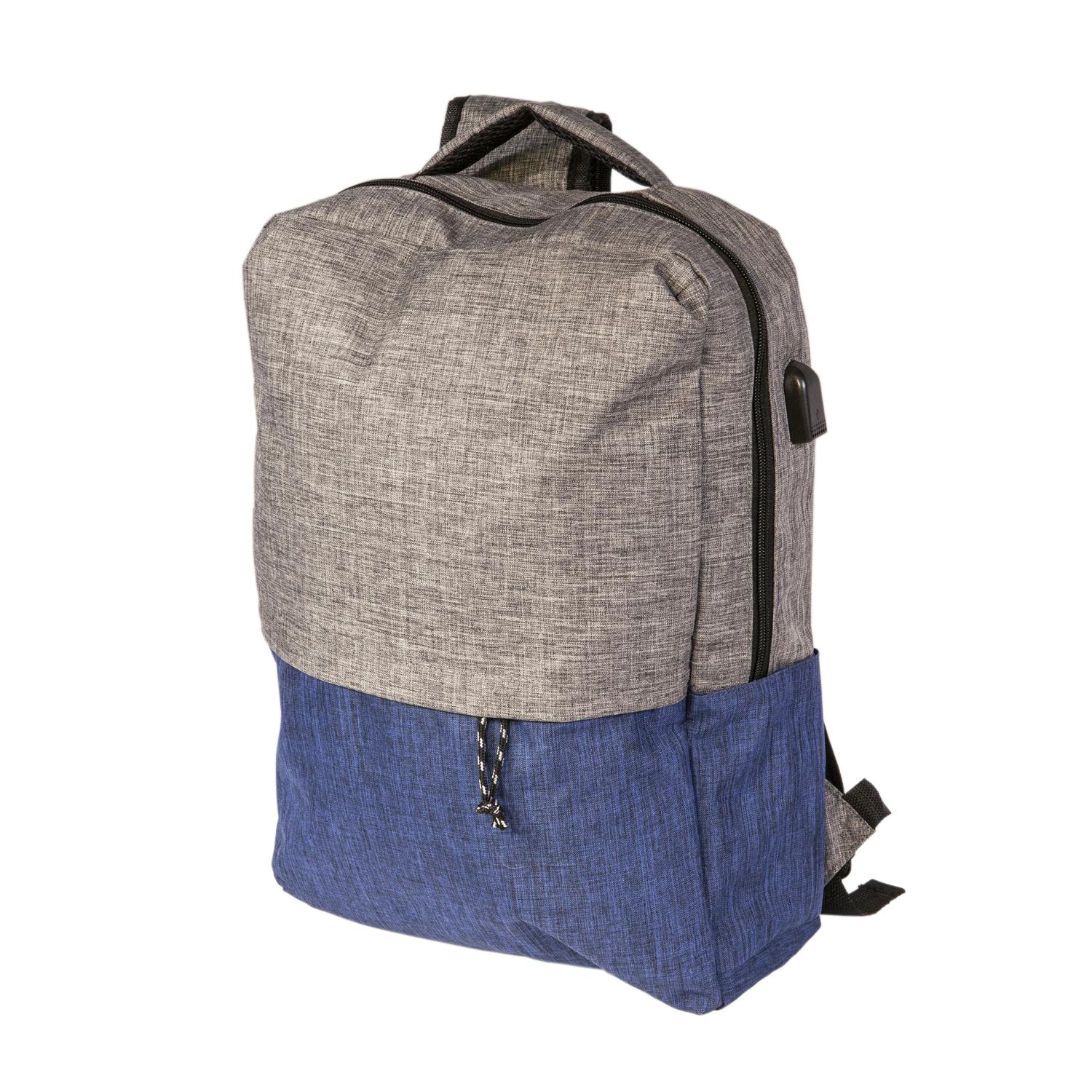 תיק גב למחשב נייד עם שקע חיצוני לחיבור מטען נייד.
