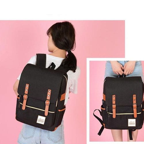 תיק גב מעוצב משולב ברצועות דמוי עור