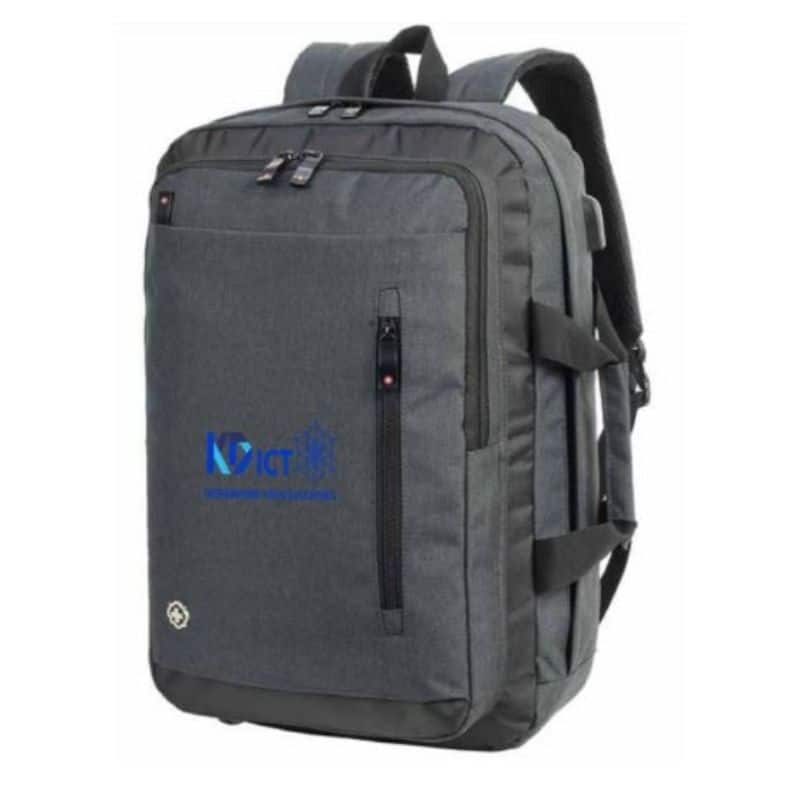 תיק הגב למחשב בורדו מעוצב כמאפשר טעינה לטלפון נייד. בצד התיק חיבור USB כולל כבל בעזרתו ניתן לחבר את הטלפון הנייד, הנמצא בכיס חיצוני לתיק, אל מטען המונח בתוך התיק. וכך ניתן אף להשתמש במכשיר בעודו נטען. תיק הגב יכול להפוך בקלות לתיק נשיאה המולבש על מזוודה. זהו תיק נסיעות מעולה המתאים לעבודה בטיסה/ נסיעה.