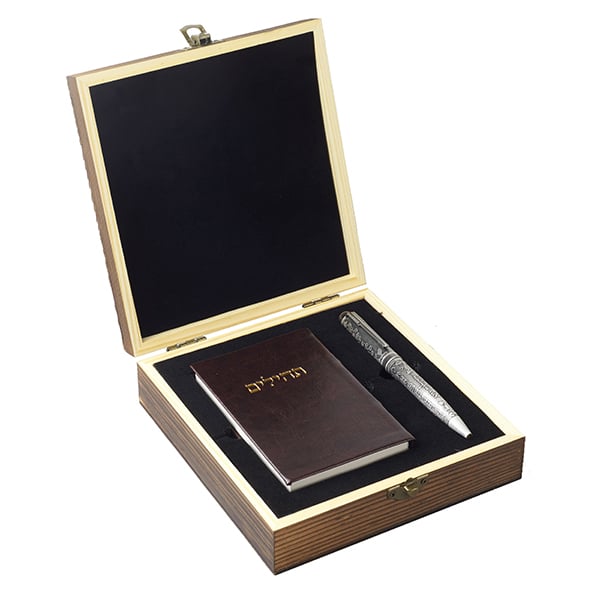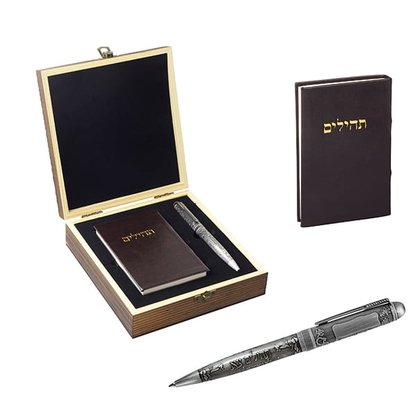 מארז עץ "תהילים" הכולל ספר תהילים ועט תבליט "תהילים"
