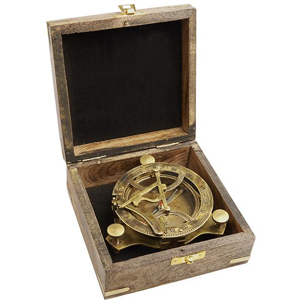 "נלסון" מצפן שעון שמש מהודר במארז עץ
