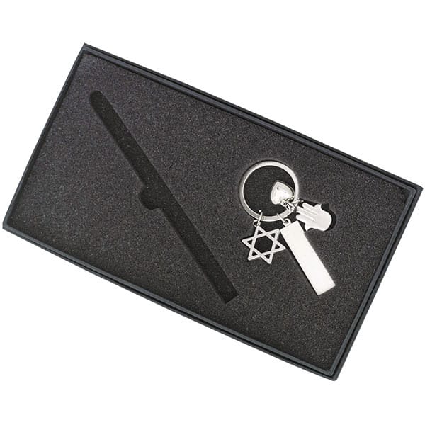 מארז מחזיק מפתחות חמסה / לב / מגן דוד / לוחית + מקום לעט