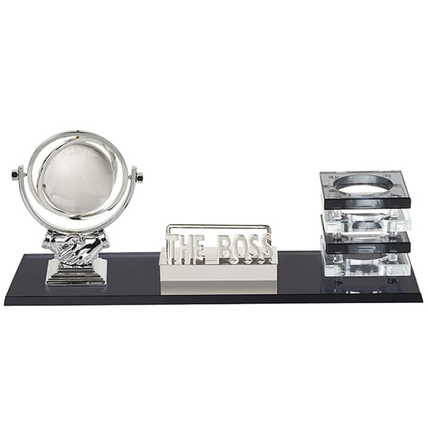 "BOSS" מעמד קריסטל גלובוס עם כוס לעטים ומעמד לכרטיסי ביקור
