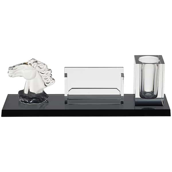 מעמד קריסטל סוס עם כוס לעטים ומעמד לכרטיסי ביקור