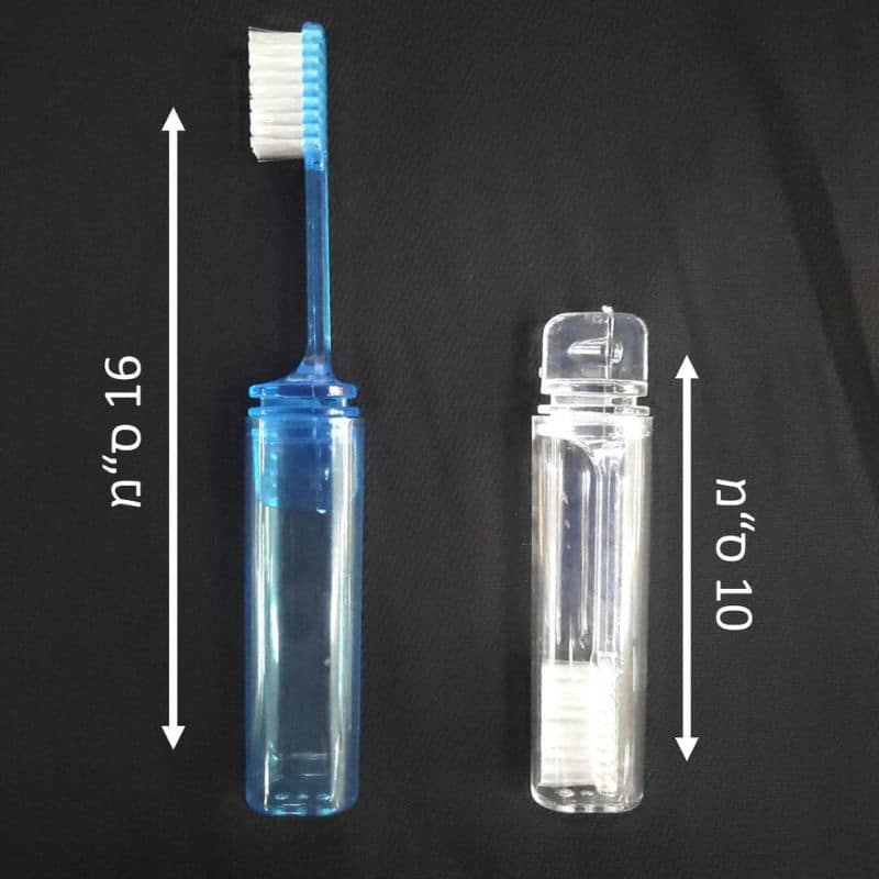 מברשת שיניים מתקפלת בצבעים כחול-שקוף/שקוף. מושלמת למארזים ומתנות. ניתנת למיתוג