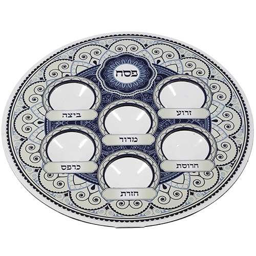 צלחת פסח קרטון עם פלסטיק גווני כחול 38 ס"מ