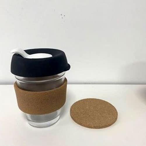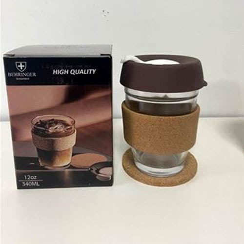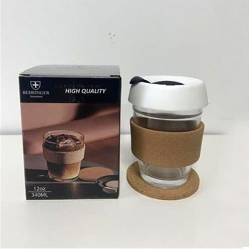 כוס זכוכית משולבת עם חבק שעם . קיבולת 340 מ"ל. המוצר כולל גם תחתית שעם