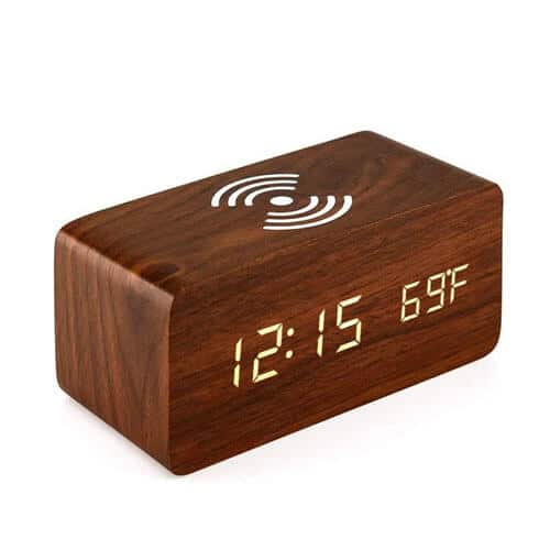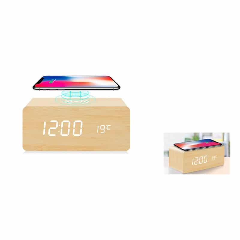 מטען אלחוטי משולב עם שעון מעורר דיגיטלי.