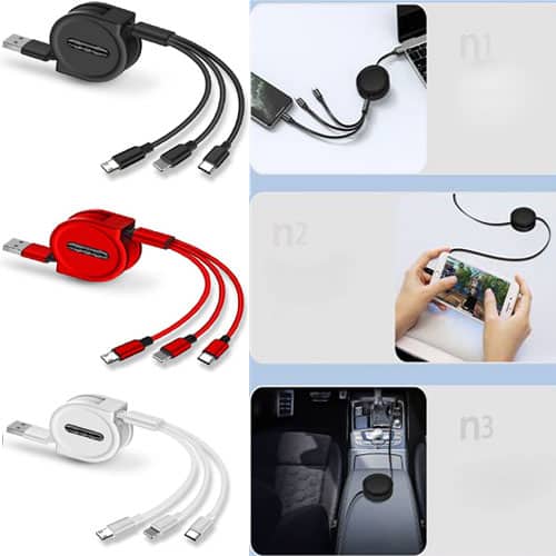 כבל טעינה איכותי במיוחד יו-יו. כניסת USB בצידו האחד ובצד השני שלוש כניסות למכשירים שונים.אייפון.אנדרואיד ו TYPE-C