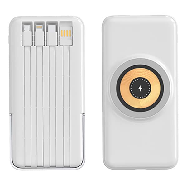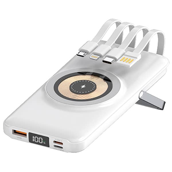 פאוור בנק סוללת גיבוי 10,000mAh הכולל 4 כבלים נשלפים 2 פנסי לד, צג דיגיטלי ורגלית
