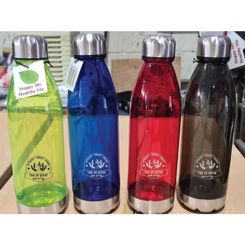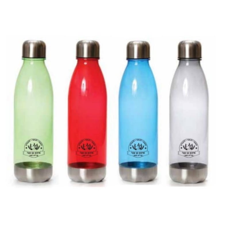 בקבוק פלסטיק באולינג לשתייה קרה.בסיס ופקק מתכתיים