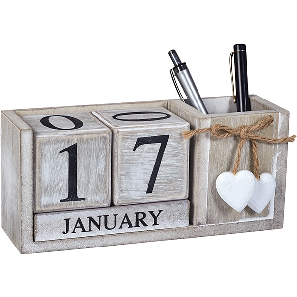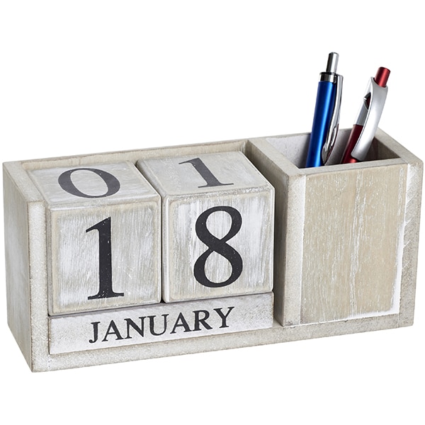 מעמד קלנדר תאריכון קוביות עץ עם כוס לעטים