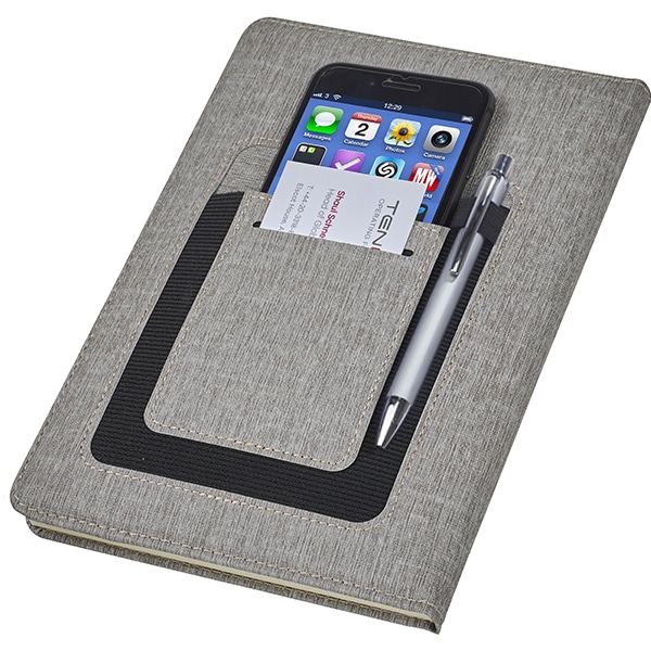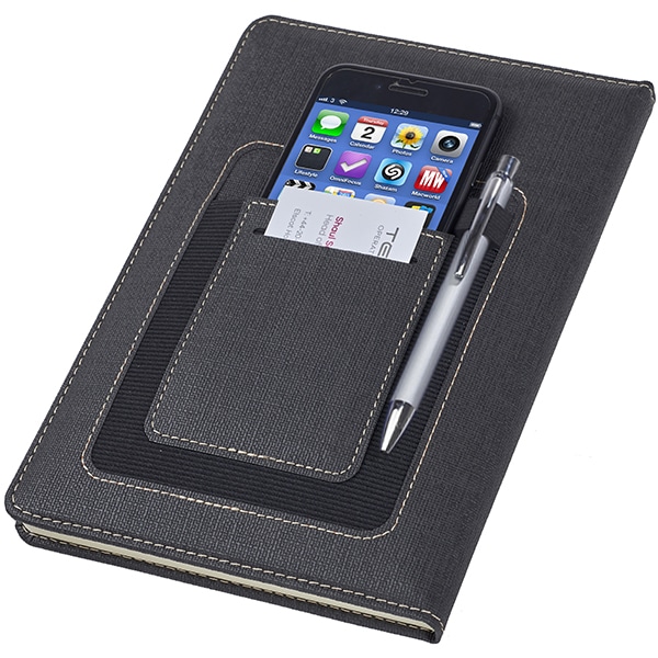 מחברת עסקים A5 עם תא קדמי לסלולאר, כרטיסי ביקור ועט