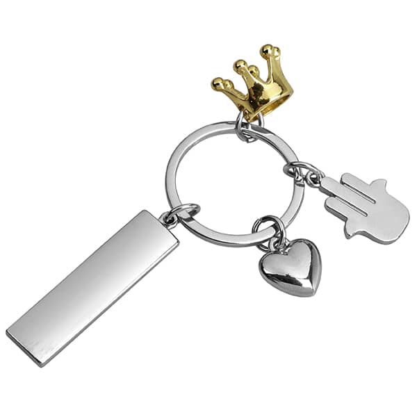 מחזיק מפתחות מתכת חמסה+לב+כתר זהב+לוחית