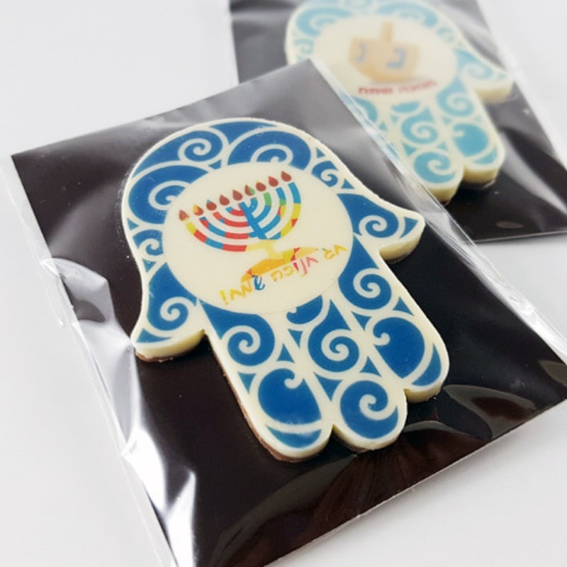 שוקולד איכותי בצורת חמסה בעיצוב וכיתוב לבחירתכם
